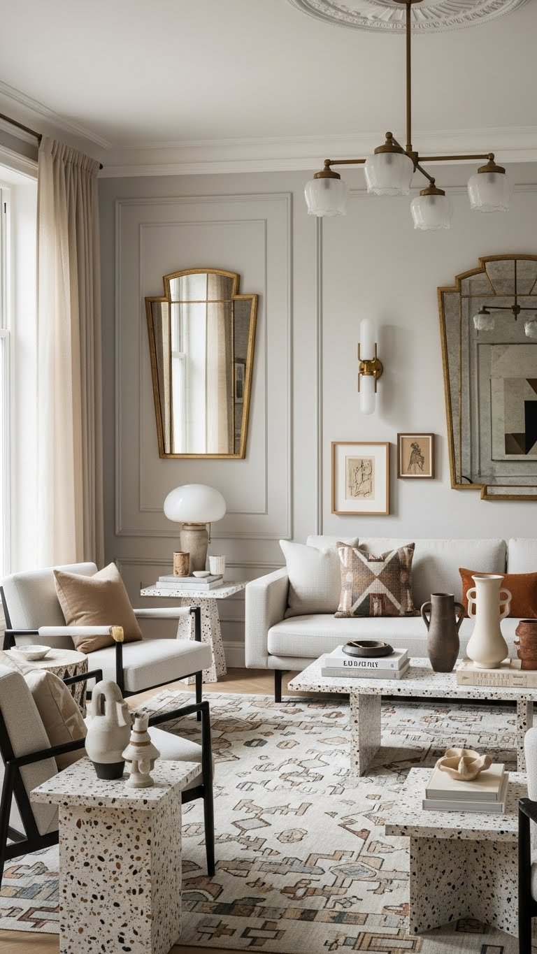 Let terrazzo furniture anchor a playful contrast while minimal accessories and open space let each piece breathe, so your apartment feels liberated, curated, and distinctly you.