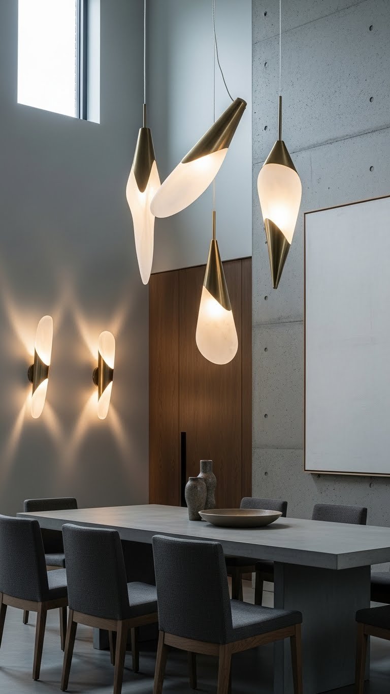 Now that you’ve mapped out zones with rugs and dividers, bring the eye upward with sculptural statement lighting that functions as art and task light. Choose sculptural pendants to anchor dining or living areas, and mix artistic sconces for layered warmth.