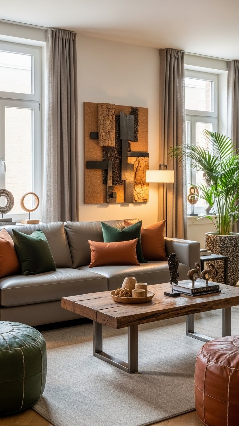 A few well-chosen textiles in terracotta, olive, and sand will ground your apartment and add instant warmth without overwhelming the room.