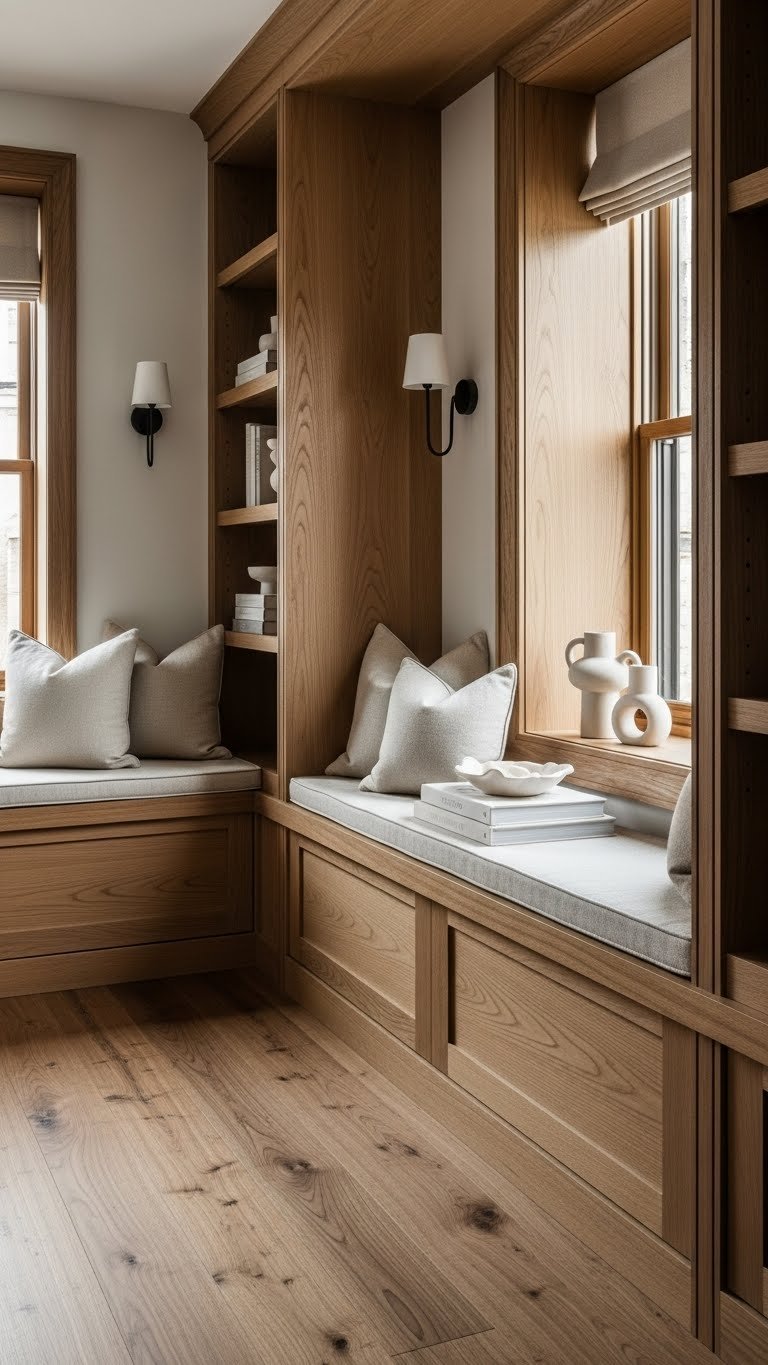 A band of warm wood—think honeyed oak or smoothed walnut—grounds the room and brings a tactile, lived-in sophistication you’ll notice the moment you step inside. Embrace heritage joinery on built-ins and window seats, pair clean lines with reclaimed planks for flooring, and keep finishes matte.