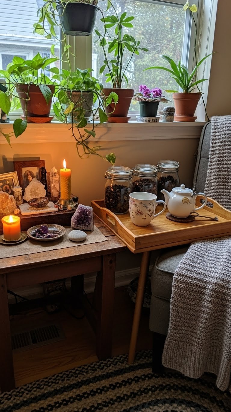 Curate a mini altar with meaningful objects, candles, and a small crystal; create a tea corner with a tray, favorite mug, and loose-leaf jars. You’ll craft free, cozy vignettes that invite quiet, ritual, and gentle everyday luxury.