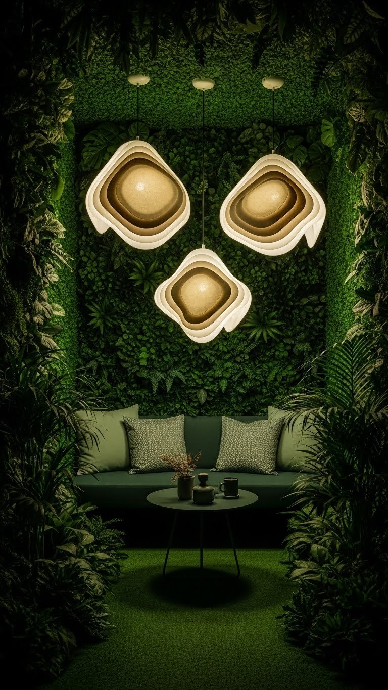 An ambient mosswall anchors the room, absorbing sound and mood. You’ll move freely, customizing biophilic systems that respect texture, light, and your restless appetite for effortless, liberated design.