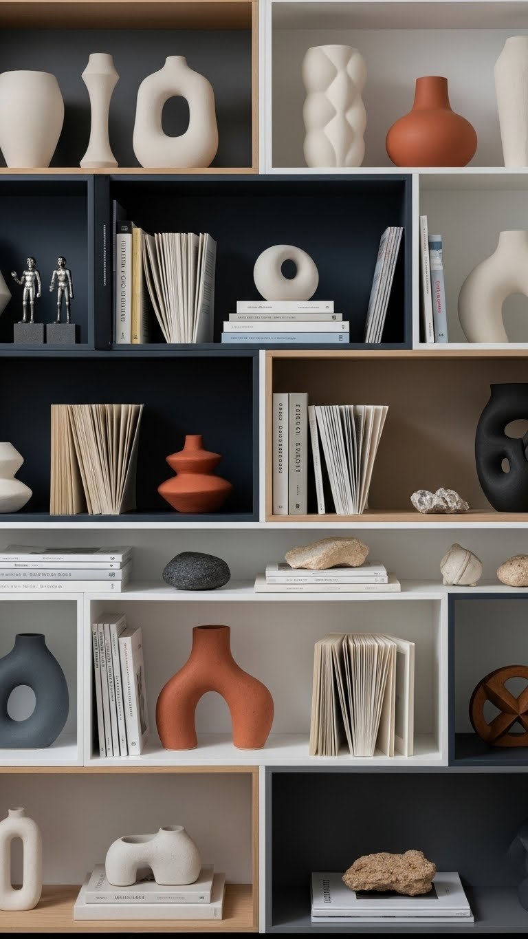 Keep palettes restrained, textures varied, and placements unexpected so your shelves feel liberated, intentional, and effortlessly modern.