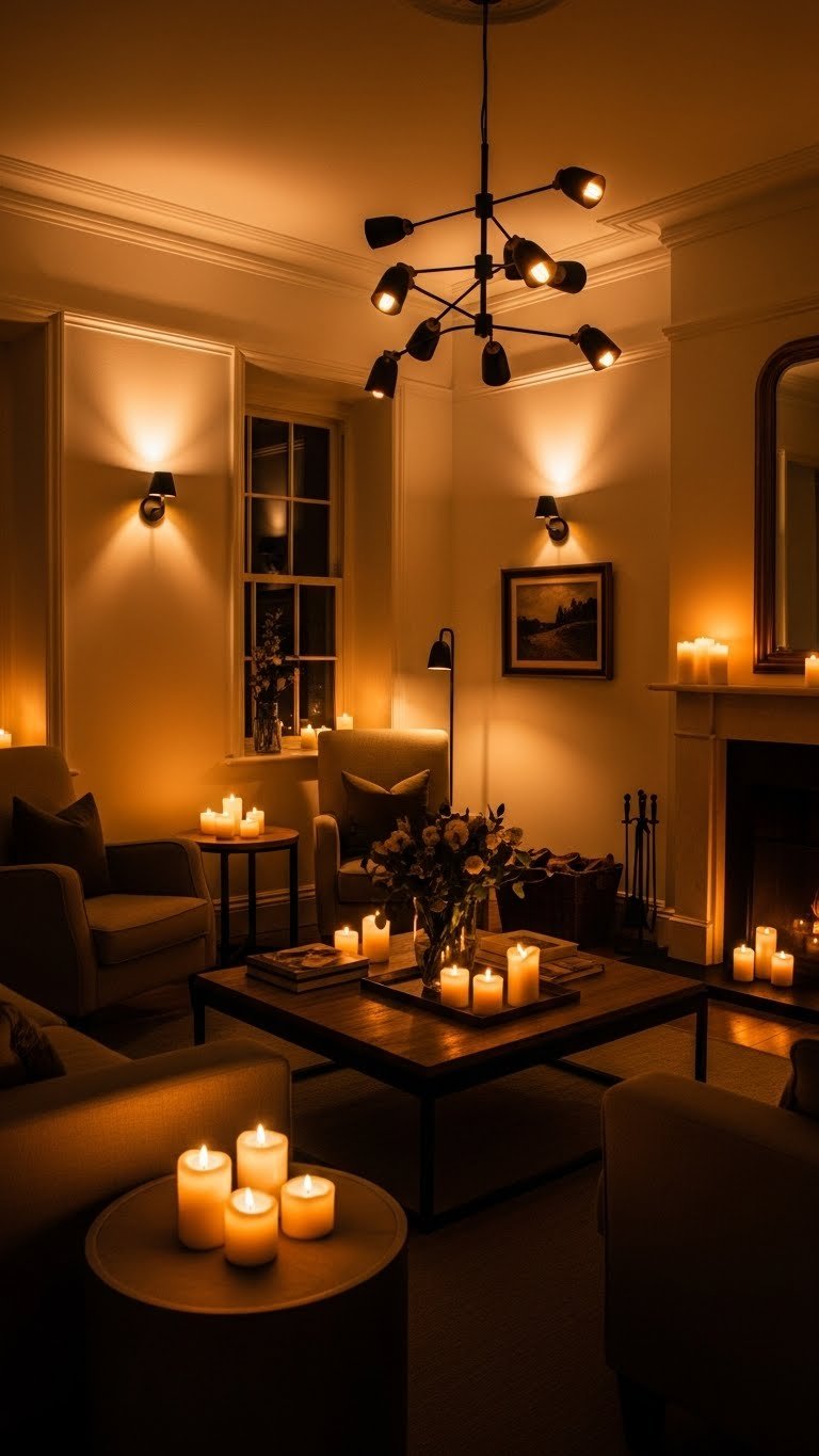 When evenings cool and you want the room to hug you back, build ambient layers of light that read as intentional rather than incidental. You’ll mix soft candlelight with warm overheads, place dimmable sconces for adjustable pools, and add low lamps that sculpt corners.