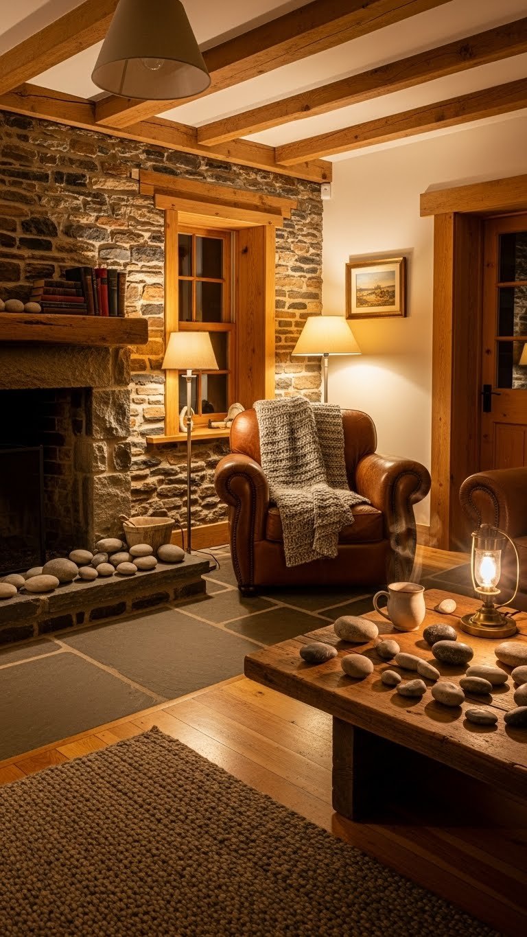 You’ll choose hewn surfaces with mineral patinas that tell time, pair timber joinery to celebrate craft, and drop riverstone accents for tactile contrast.