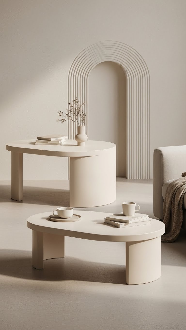 Choose sculpted tables that breathe softness into a neutral room—think rounded edges, gentle waists, and organic silhouettes that contrast crisp lines without fighting them.