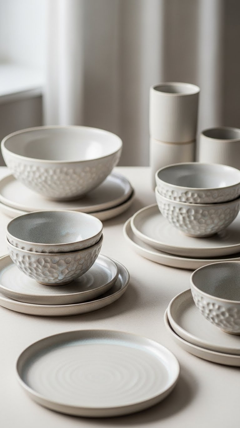 Ceramic trays and textured bowls give your surfaces instant purpose and visual calm; use them to corral everyday items, layer finishes, and introduce tactile contrast without stealing the room’s neutrality. Choose pieces with handmade glazing and subtle matte textures so each object feels curated, tactile, and free.