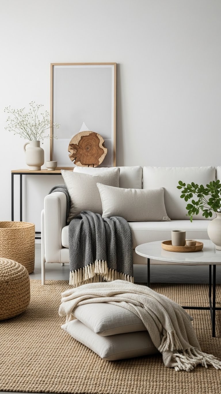When you pair clean, streamlined furniture with soft, tactile accents, the room feels modern yet deeply livable.