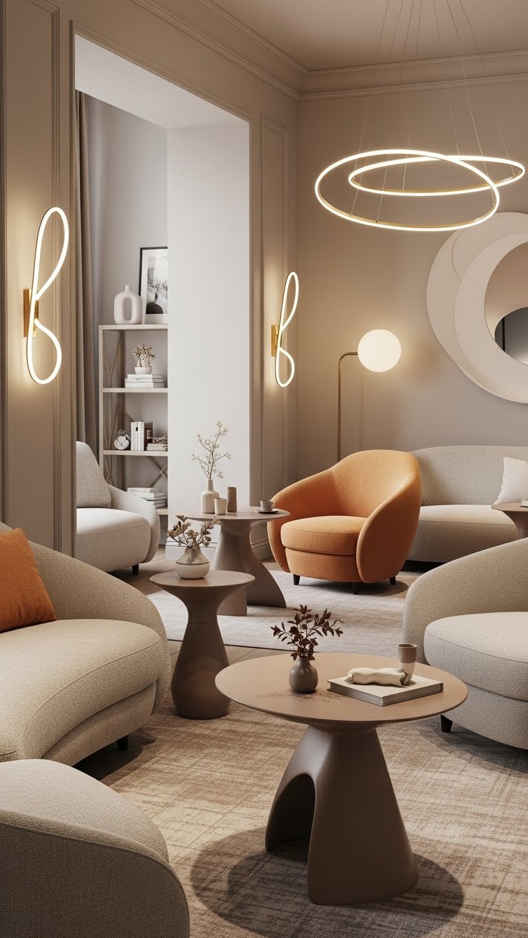 Let curves, warm finishes, and artful silhouettes invite lingering. Keep accessories minimal, layered vertically, and movable so you can rearrange freely whenever inspiration strikes.