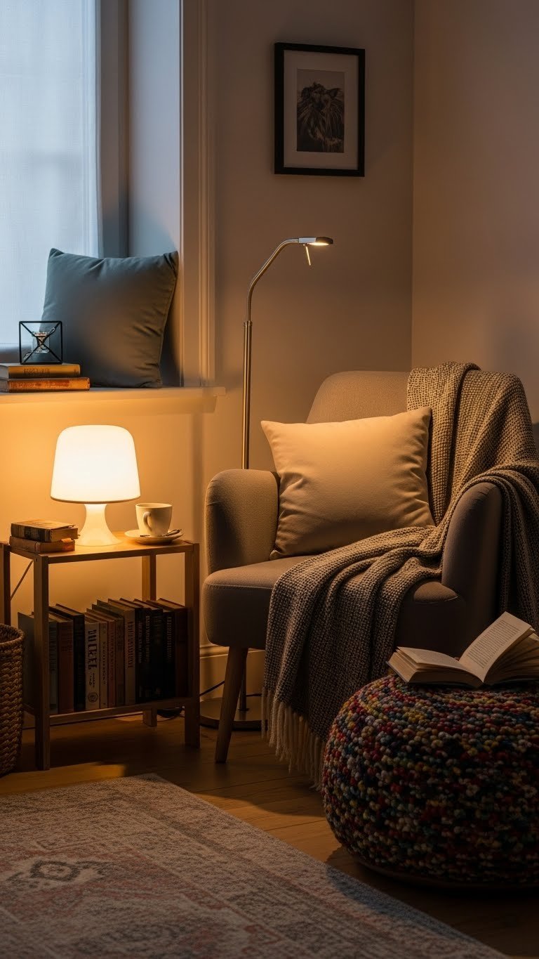 Curling up in a quiet corner with soft, layered light turns any space into a go-to reading nook; choose a plush chair or window seat, place a low-wattage lamp or warm LED floor light nearby, and angle it to reduce glare while highlighting the pages.
