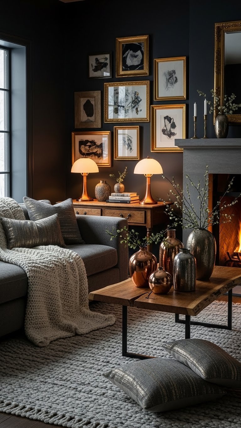 Introduce warm metallic accents to bounce light around darker winter rooms and make the space feel cozier.