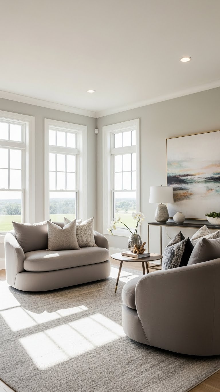 Softening harsh architectural lines with organic shapes brings instant warmth and visual flow to a room. You’ll balance rectilinear furniture with curved mirrors, rounded poufs, and sinuous side tables that invite movement.