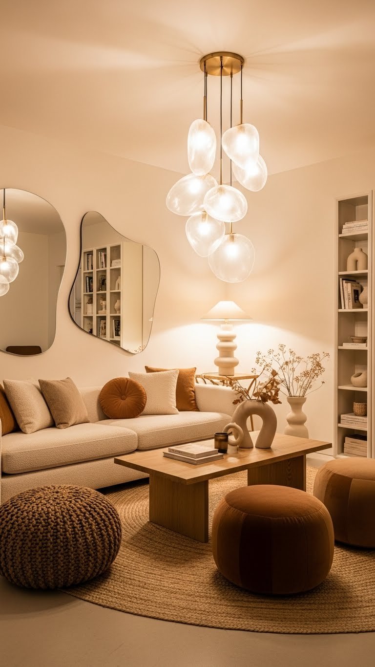 Choose organic lighting—soft bulbs, sculptural pendants—that sculpts surfaces without glare. This approach frees your space, keeps it elegant and intentional, and lets you live comfortably within a calm, flowing aesthetic.
