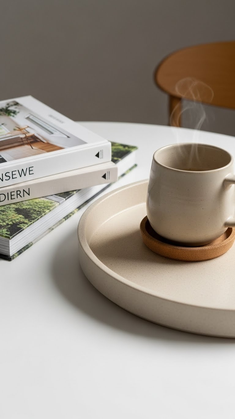 Keep scale low so books and mugs stay usable; this coffee table centerpiece feels effortless, modern, and freeing—simple styling that invites relaxed living.