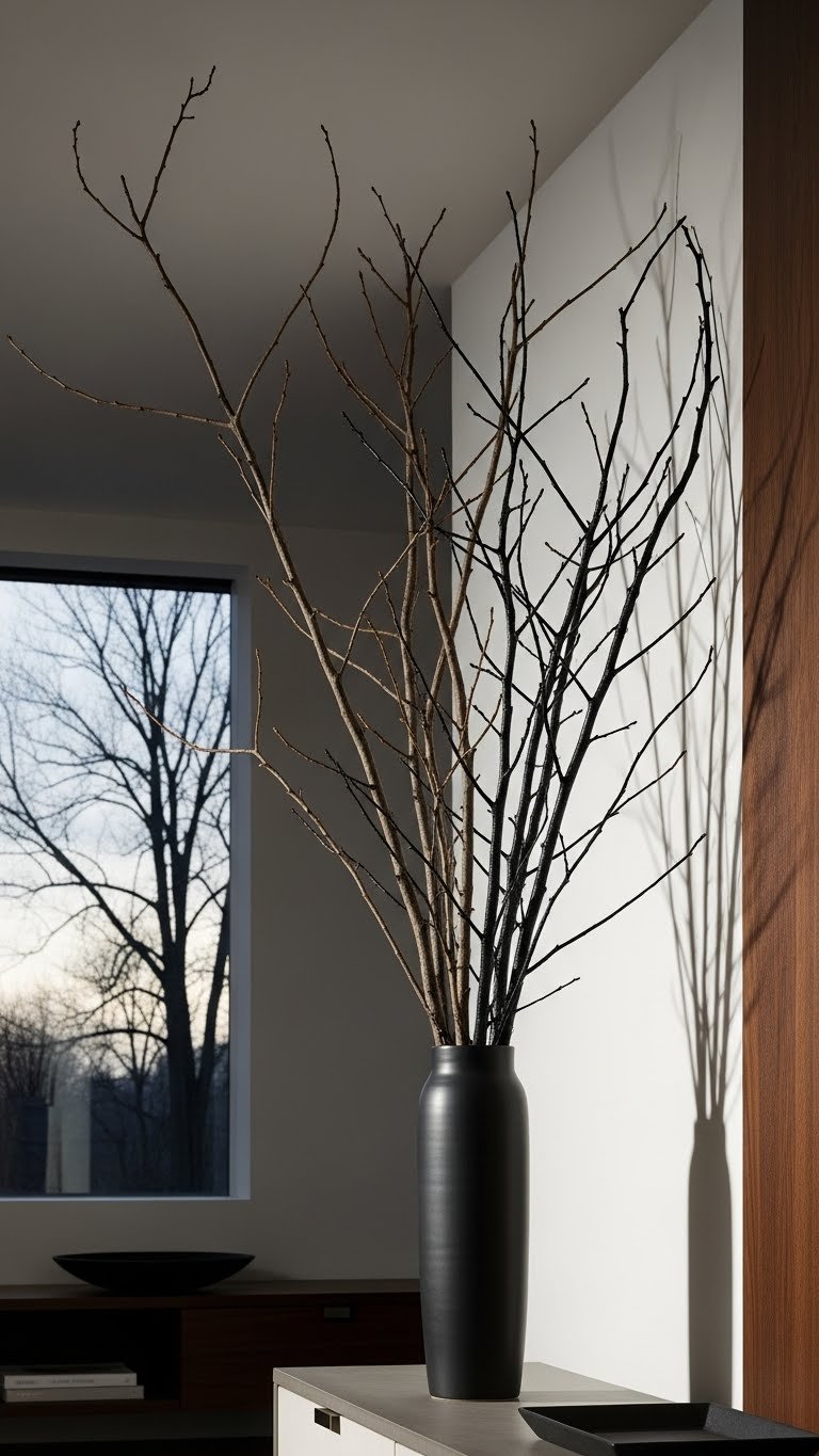 Leave branches natural or spray-paint matte black for a branch chandeliers effect, anchoring corners without clutter or fuss.