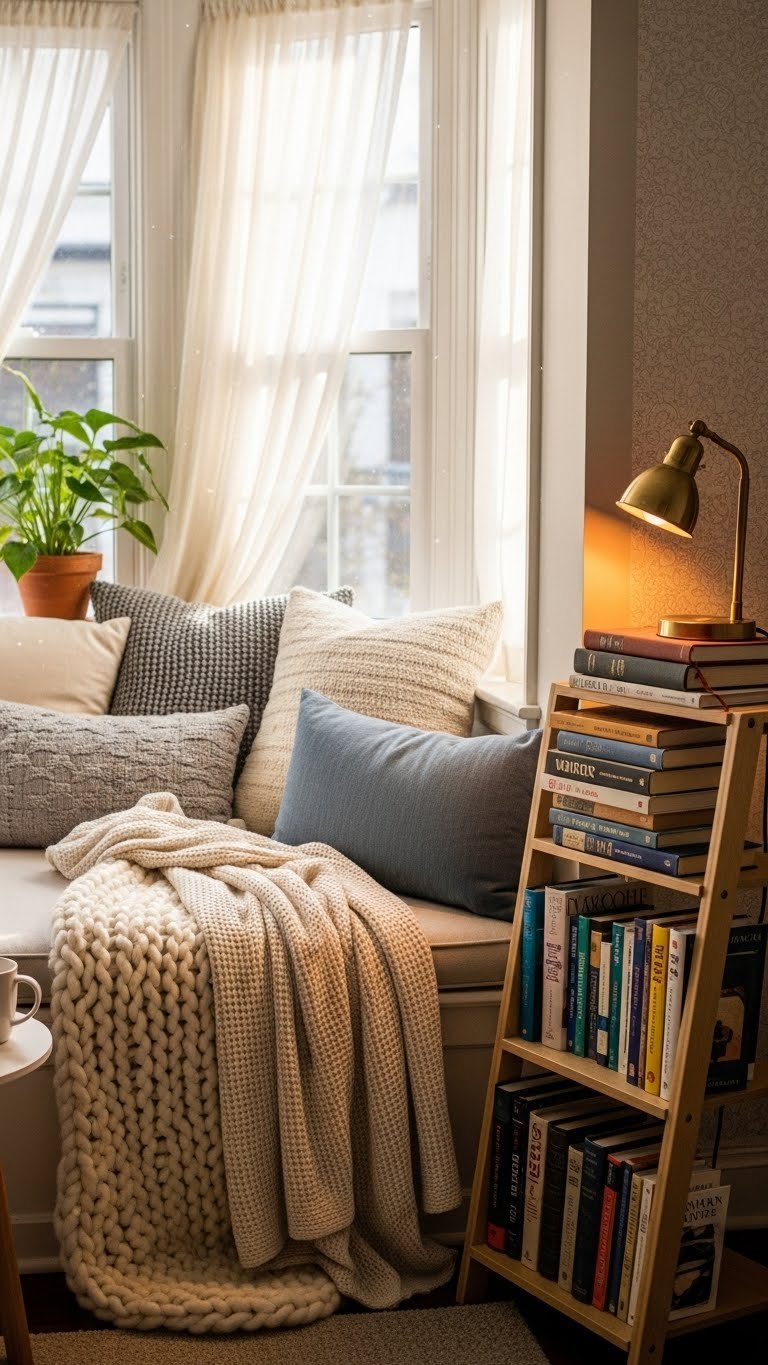 Add a slim book caddy and a small lamp to keep things deliberate and free — your window nook becomes a peaceful, stylish escape.