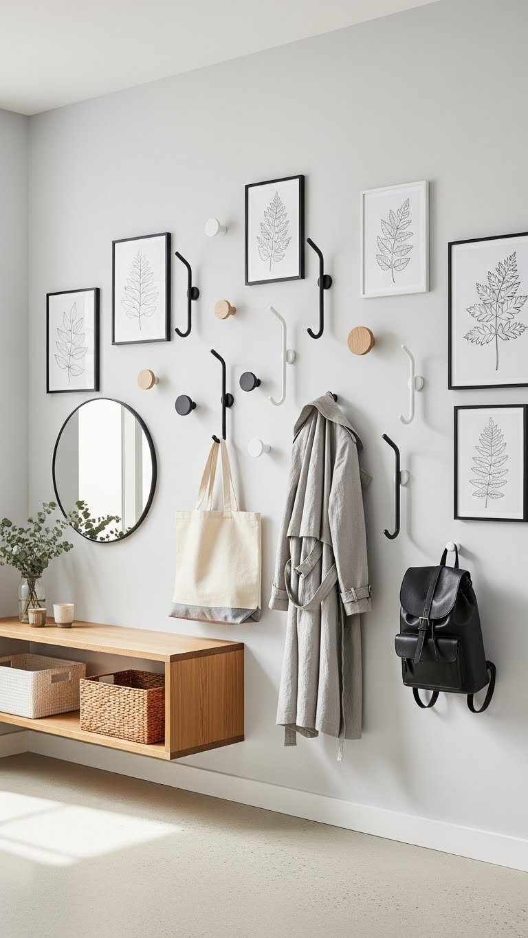 You’ll create functional storage for coats and bags while maintaining an airy, liberated aesthetic that feels intentionally simple.