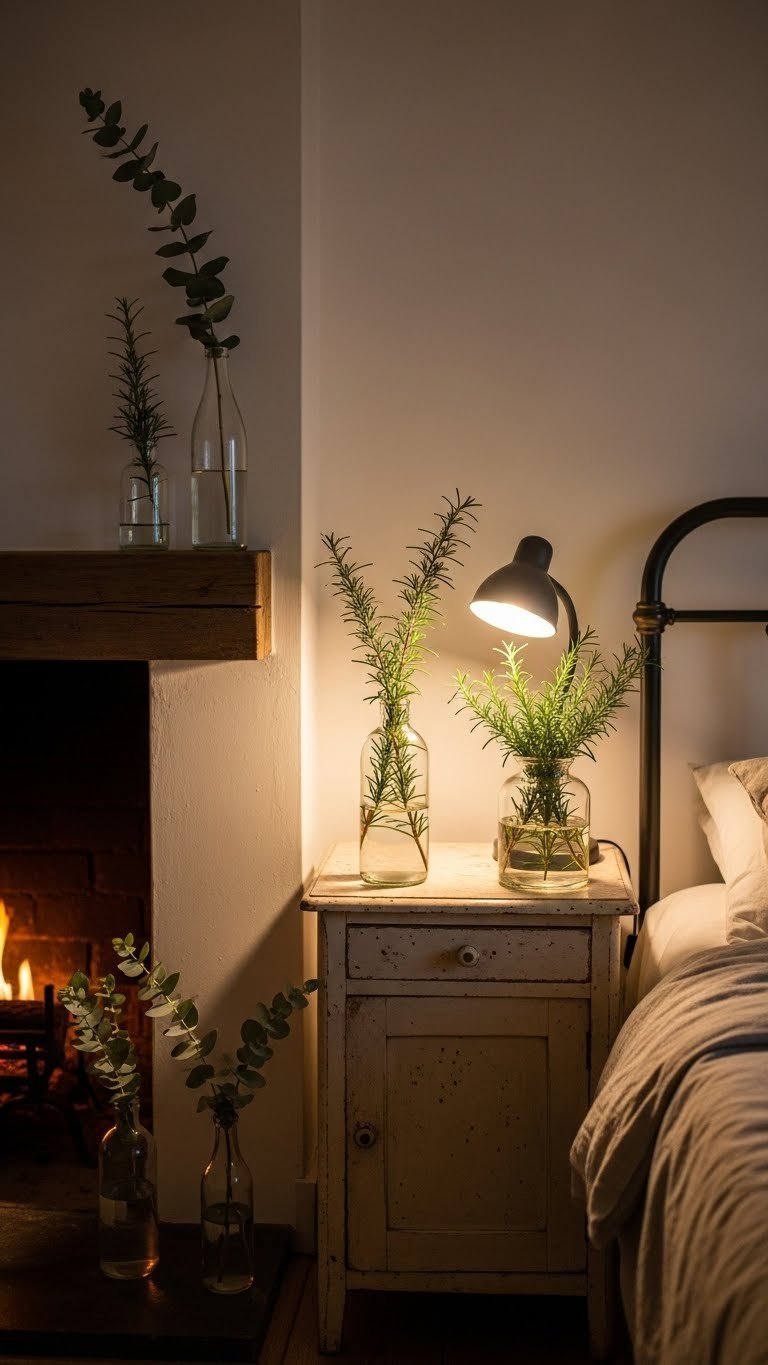 You’ll arrange pine cones with eucalyptus sprigs and a ceramic votive, mixing seasonal textures for contrast.
