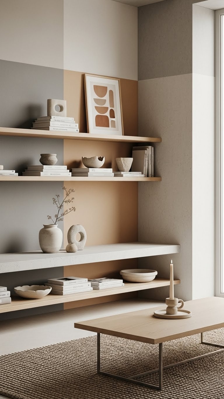 When you want rooms to feel restful and refined, anchor surfaces with blocks of neutral color—think linen, warm gray, soft sand—so the eye can pause.