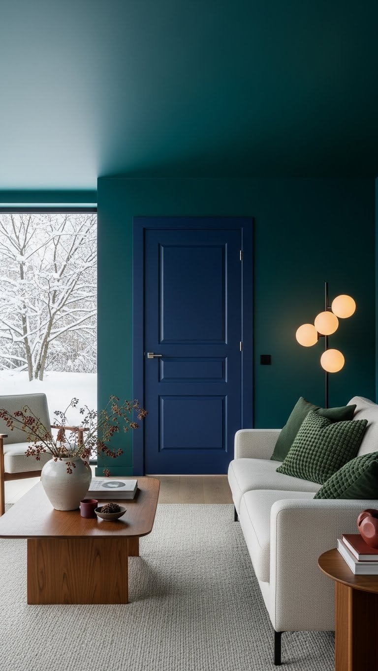 Choose deep blues, forest greens or oxbloods for freedom-forward contrast, balance with neutral furnishings, and trust saturated color to make winter interiors feel curated, confident, and effortlessly chic.