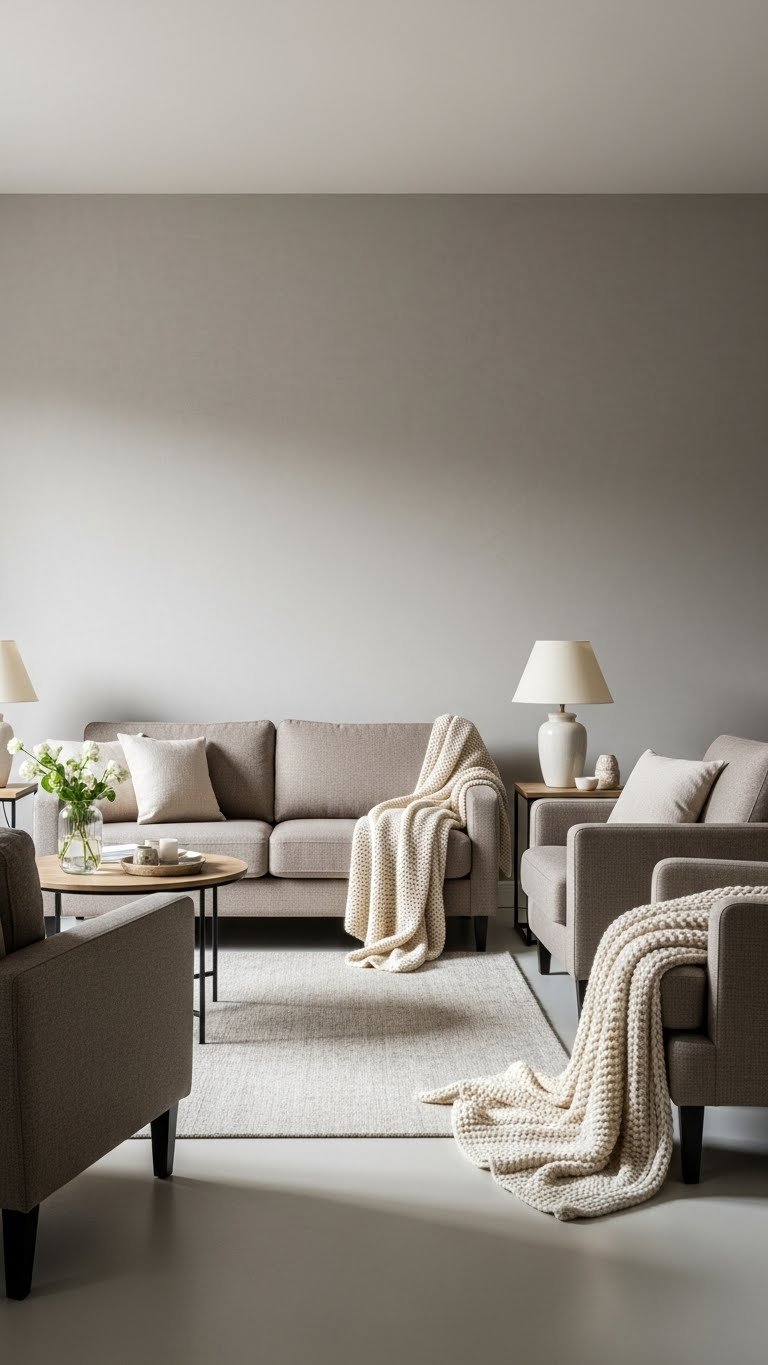You’ll favor soft greige as a grounding wall color, introduce textured taupe upholstery, and use layered creams on rugs, throws, and lampshades to create effortless contrast and an open, liberated feel.