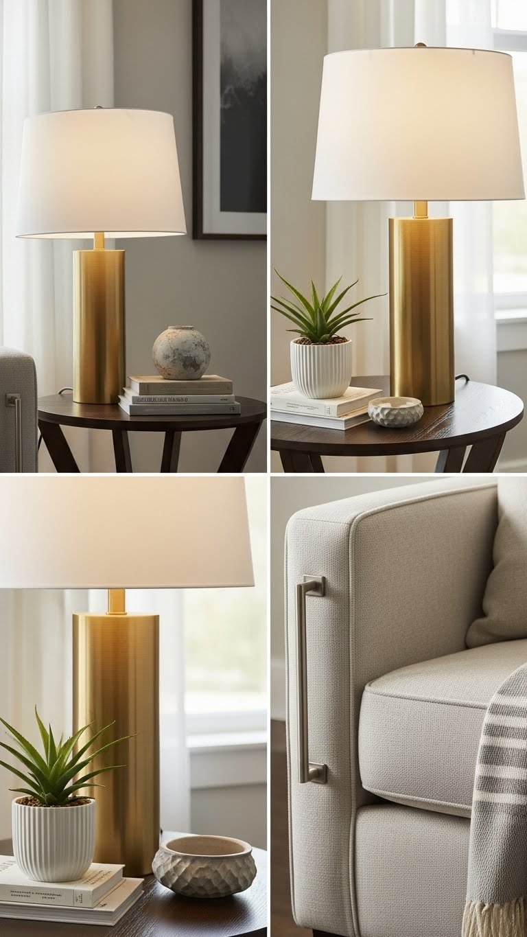 Swap lamp bases, hardware, and small decor so each finish appears deliberate. The result feels edited, free, and quietly luxurious without overpowering your calm palette.