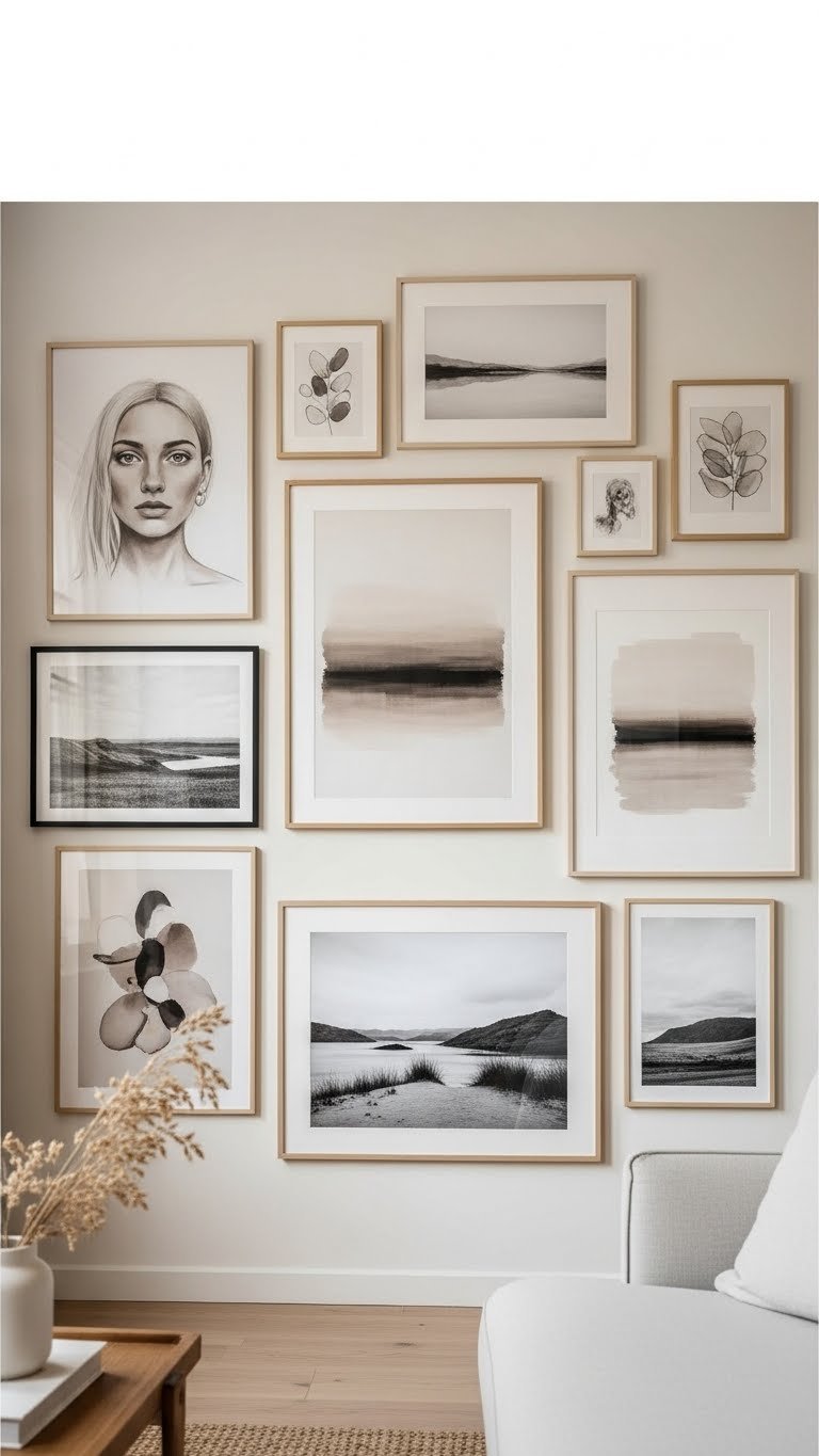 Curate Neutral‑Toned Artwork and Monochrome Photography