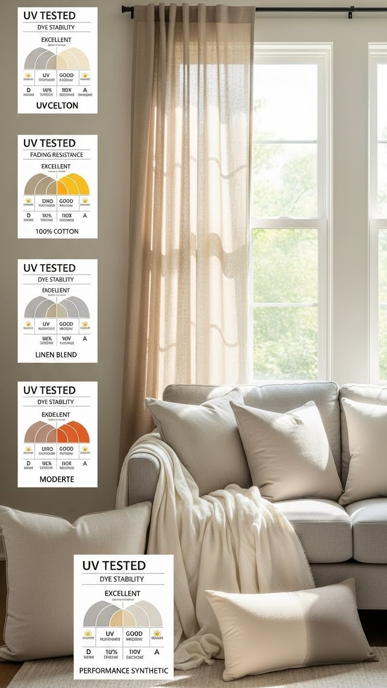 Pick natural and performance blends with proven lightfastness, position pieces to reduce direct exposure, and relish a calm, sunlit room that keeps its intended tones without constant replacement.