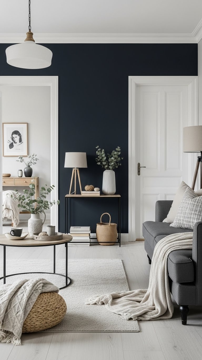 Choose one focal element in matte charcoal or velvety ink—a sofa, accent wall, or rug—to create contrast without heaviness. That restraint lets other textures breathe and keeps your space open, intentional, and liberating.