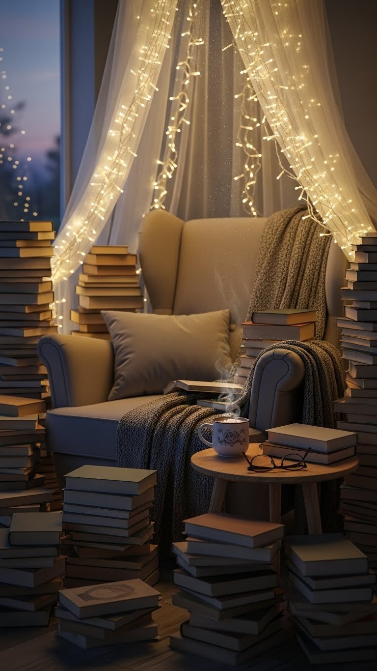 You’ll arrange a draped twinkle above a chair and stack favorite titles to create a book haven. The soft glow makes a cozy cocoon for reading, letting you relax, wander, and reclaim moments of calm.