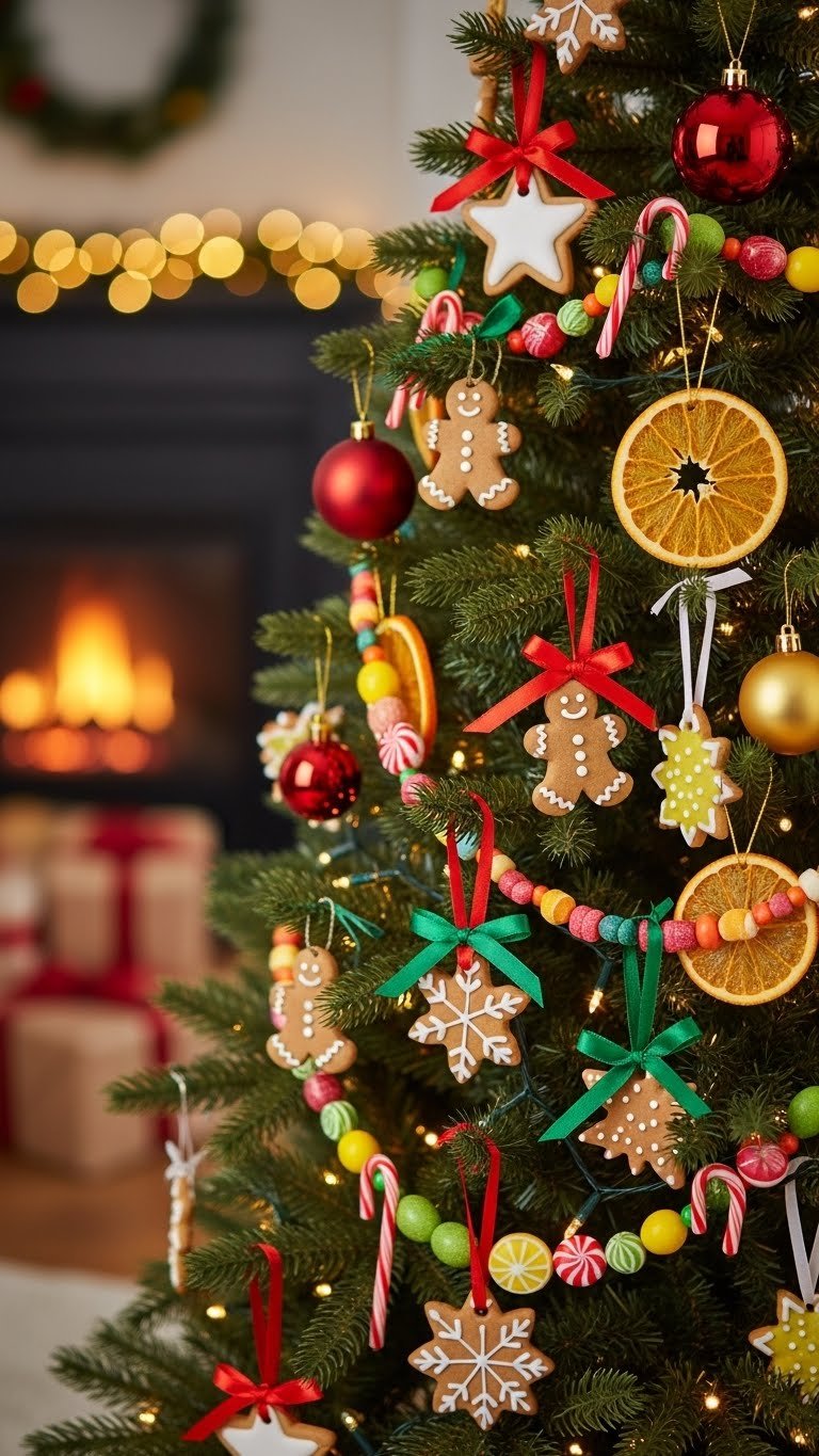 Dress up your festive tree with edible ornaments to add charm, scent, and a playful twist that guests can actually nibble. Hang cookie ornaments with ribbons, varnish lightly for longevity, and mix in spiced orange slices.