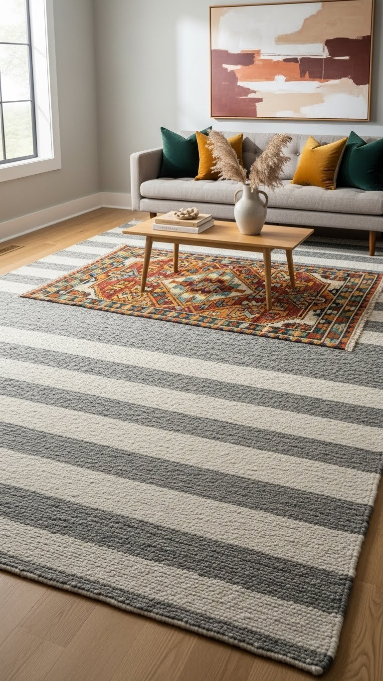 Often you’ll find that layering rugs—pairing bold stripes with crisp geometrics—instantly anchors a room and adds unexpected depth without feeling busy.
