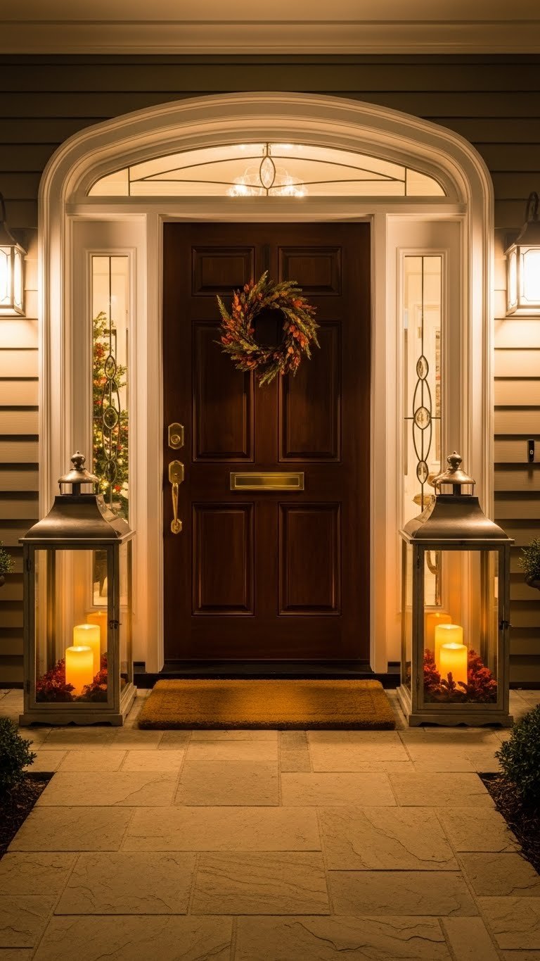 A pair of supersized lanterns flanking your entry instantly anchors the approach and signals seasonal styling with confidence.