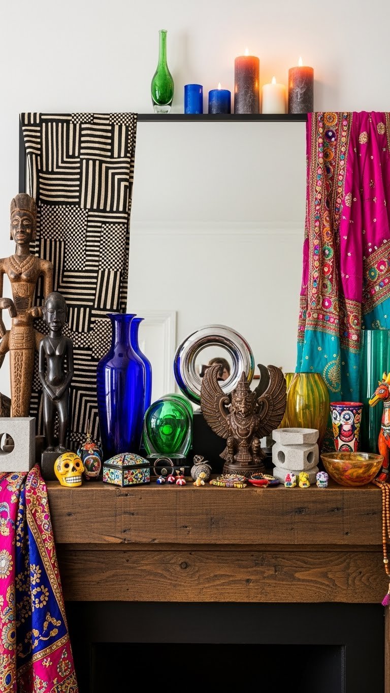 Eclectic Global-Inspired Mantel With Colorful Accents