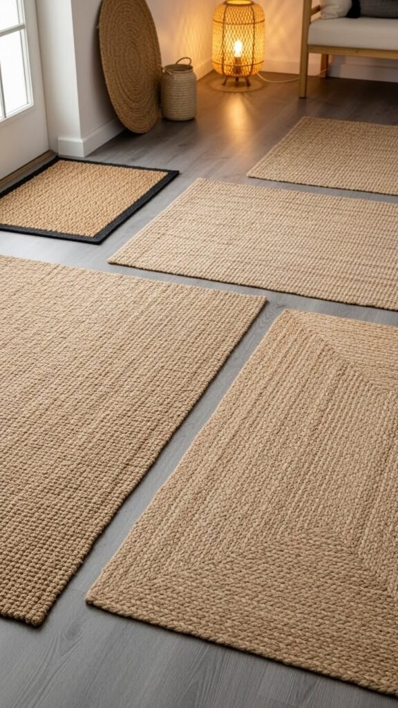 You’ll love jute runners for hallways and seagrass mats by entryways — they’re durable, breathable, and effortlessly chic. Mix sizes and relaxed edges for a liberated, lived-in feel that keeps the space modern yet warmly rooted.