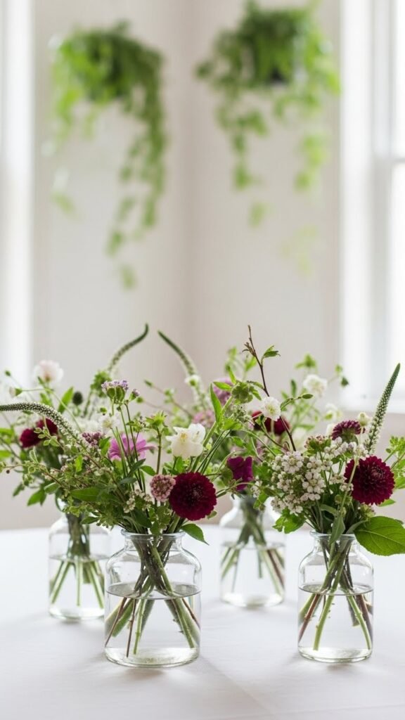 You’ll mix foraged stems with cultivated blooms in simple bud vase arrangements, favoring seasonal color and confident palette pairing.