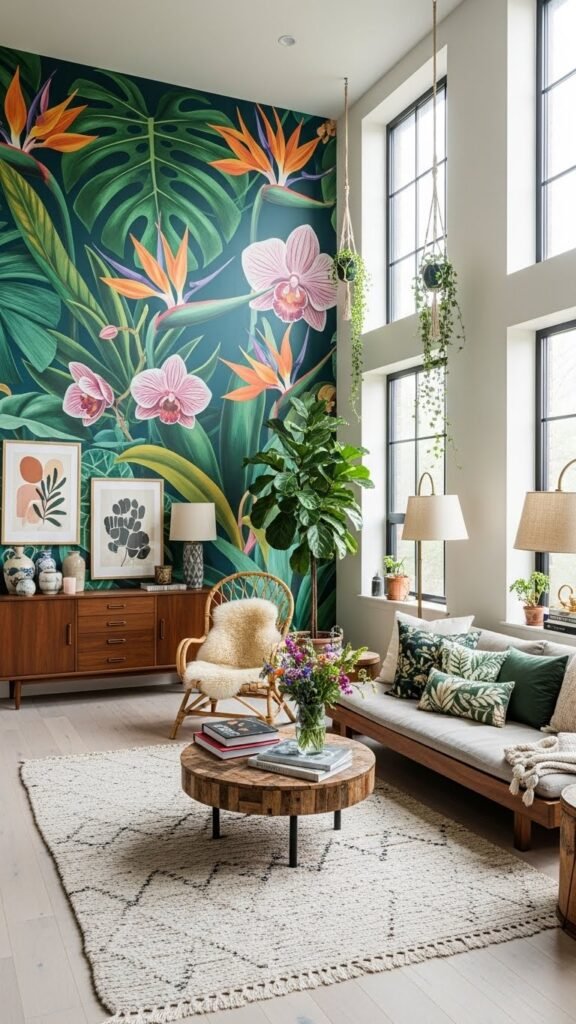 Pick graphic botanical murals for an unapologetic, free-spirited vibe or lean into vintage botanicals for muted charm.