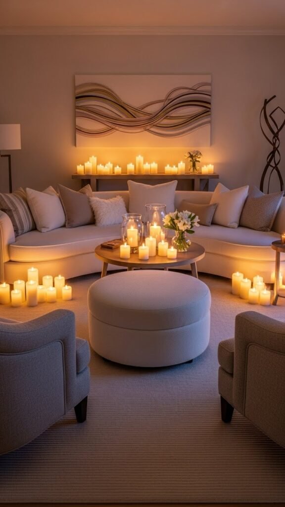 Bring in candles and lanterns to layer tactile warmth and instant atmosphere; they’re the easiest way to soften bright spring light and add sculptural interest. You’ll mix lanterns, votives and pillar candles for mood, practice scent layering with subtle florals and citrus, and keep candle safety front and center — trimmed wicks, stable holders, and never leaving flames unattended to preserve your liberated, calm space.