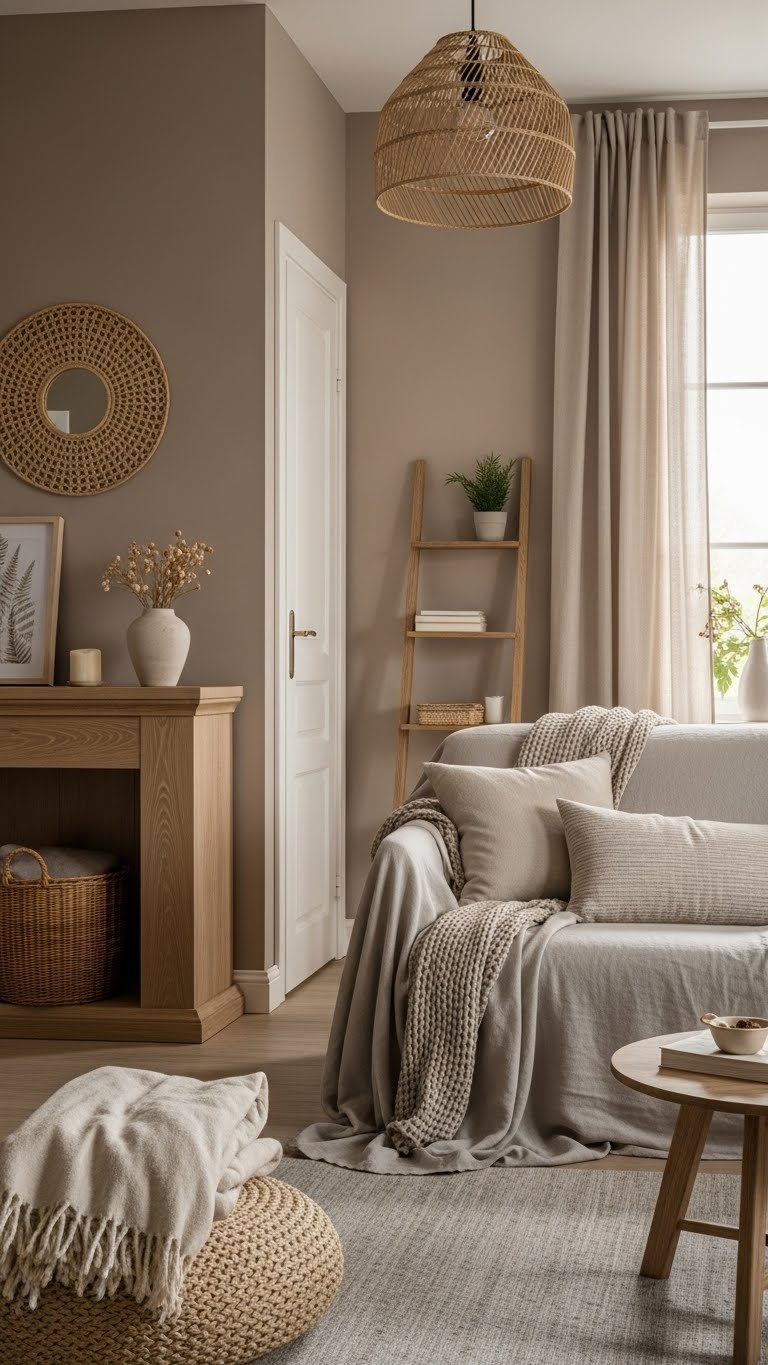 You’ll find simple shifts that turn cool rooms into a quietly warm retreat: think soft taupe walls, honeyed floors, layered rugs and tactile throws that invite you to linger. I’ll show how to balance bouclé and velvet, add amber lighting and brass accents, and bring in seasonal greens and candles for an intimate glow. Keep it calm, practical, and undeniably lived-in—and then try one idea that changes everything.