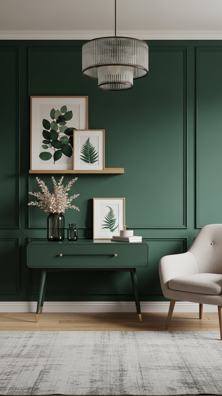 Depth transforms a room when you add a moody jewel accent wall—think emerald, sapphire, or deep plum grounding a soft neutral scheme and making textures pop. You’ll choose matte lacquer for calm, introduce gloss contrast on picture frames or shelves, and layer jewel gradients for subtle movement.