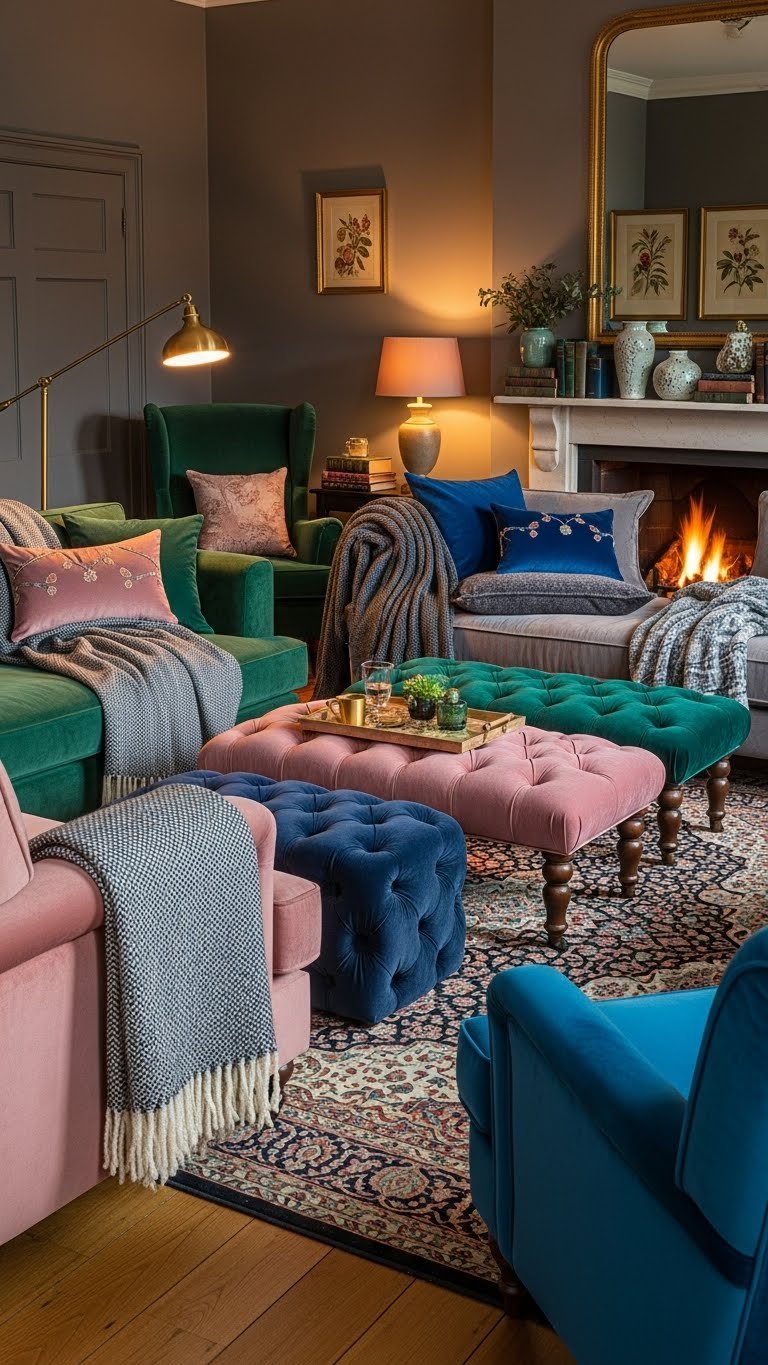 Choose rich textures, mix matte and velvet, and let color feel liberating, not cluttered.