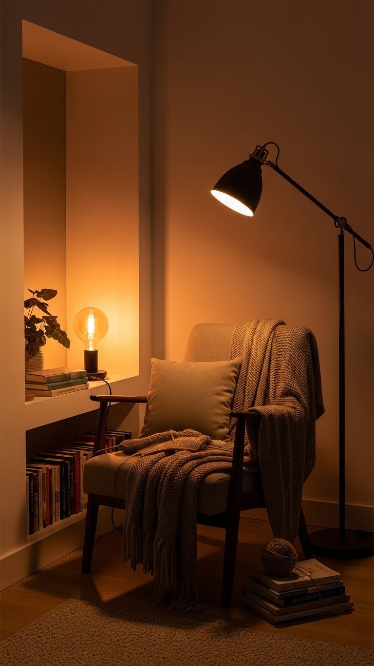 Illuminating a nook with focused task lighting makes it feel intentionally yours, drawing you into reading, knitting, or simply pausing without overpowering the room.