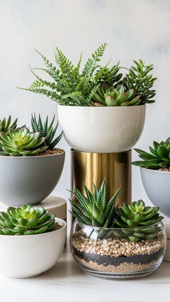 Place Faux or Real Plants in Decorative Bowls