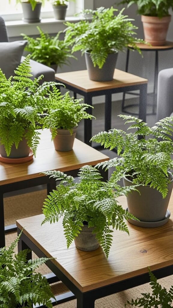 Arrange Potted Ferns on Coffee and Kitchen Tables