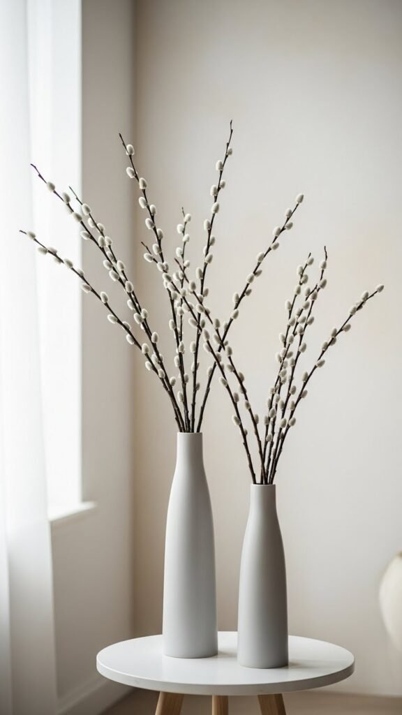 Use Tall Pussy Willow Branches in Simple Vases