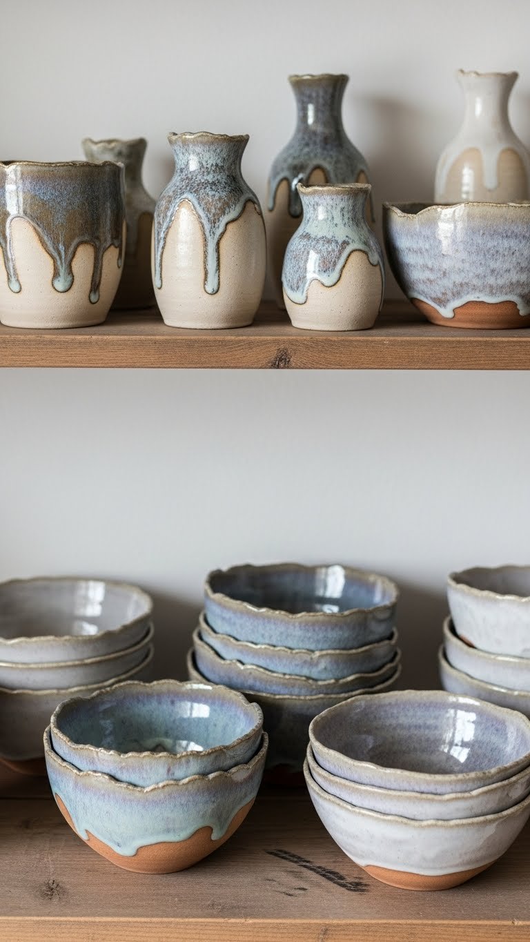 Showcase handmade ceramics like small sculptures — they anchor a shelf, console, or mantel with tactile charm and unmistakable craft. You’ll mix vases and bowls with raw edges, choosing pieces whose handmade glaze catches light and feels personal.
