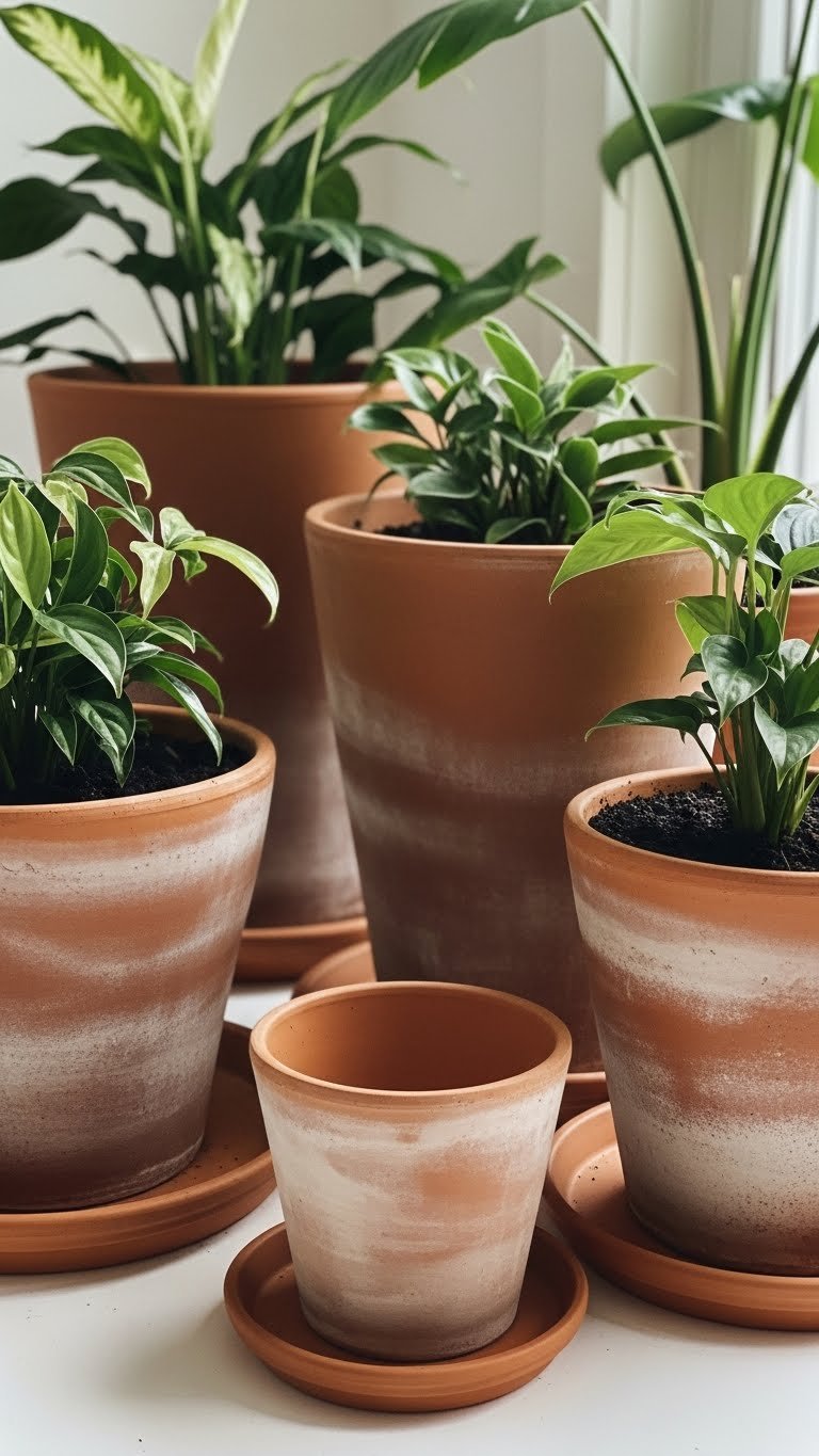 Bring warmth and life into your space with terracotta planters that age gracefully and pair beautifully with indoor botanicals. You’ll mix terracotta textures—smooth rims, weathered bodies—with varied foliage to create calm, liberated corners.