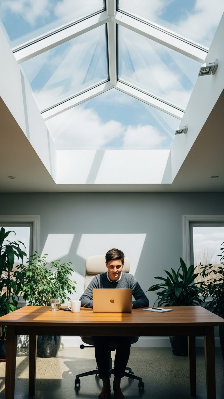 While natural light elevates any room, installing skylights changes how you feel and work by flooding your space with consistent, glare-free daylight that tracks your circadian rhythm. You’ll choose a roof window to frame sky views, boost focus, and invite calm.