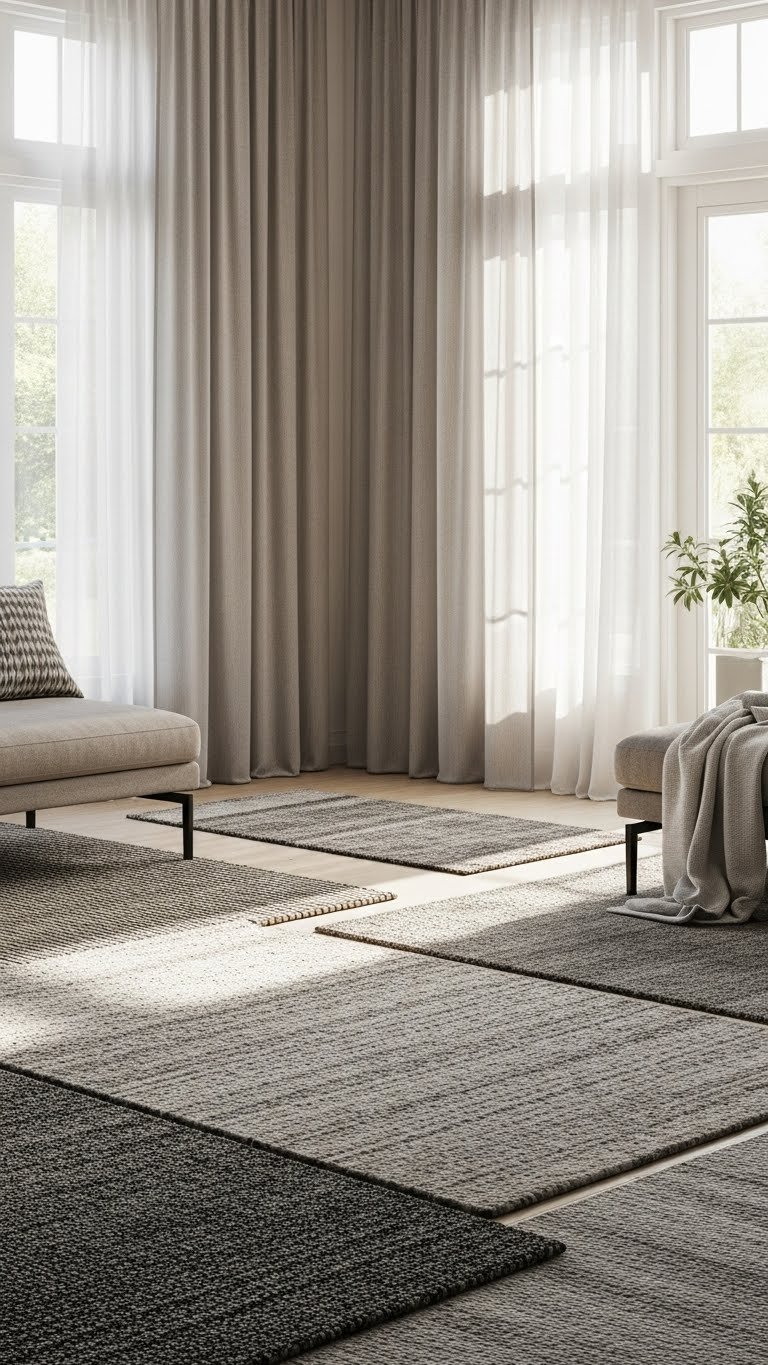 You’ll love how rug layering plus acoustic curtains absorbs noise, defines zones, and keeps freedom-forward style intact. Choose natural textures, varied pile heights, and movable pieces so you can adapt sound and mood instantly.