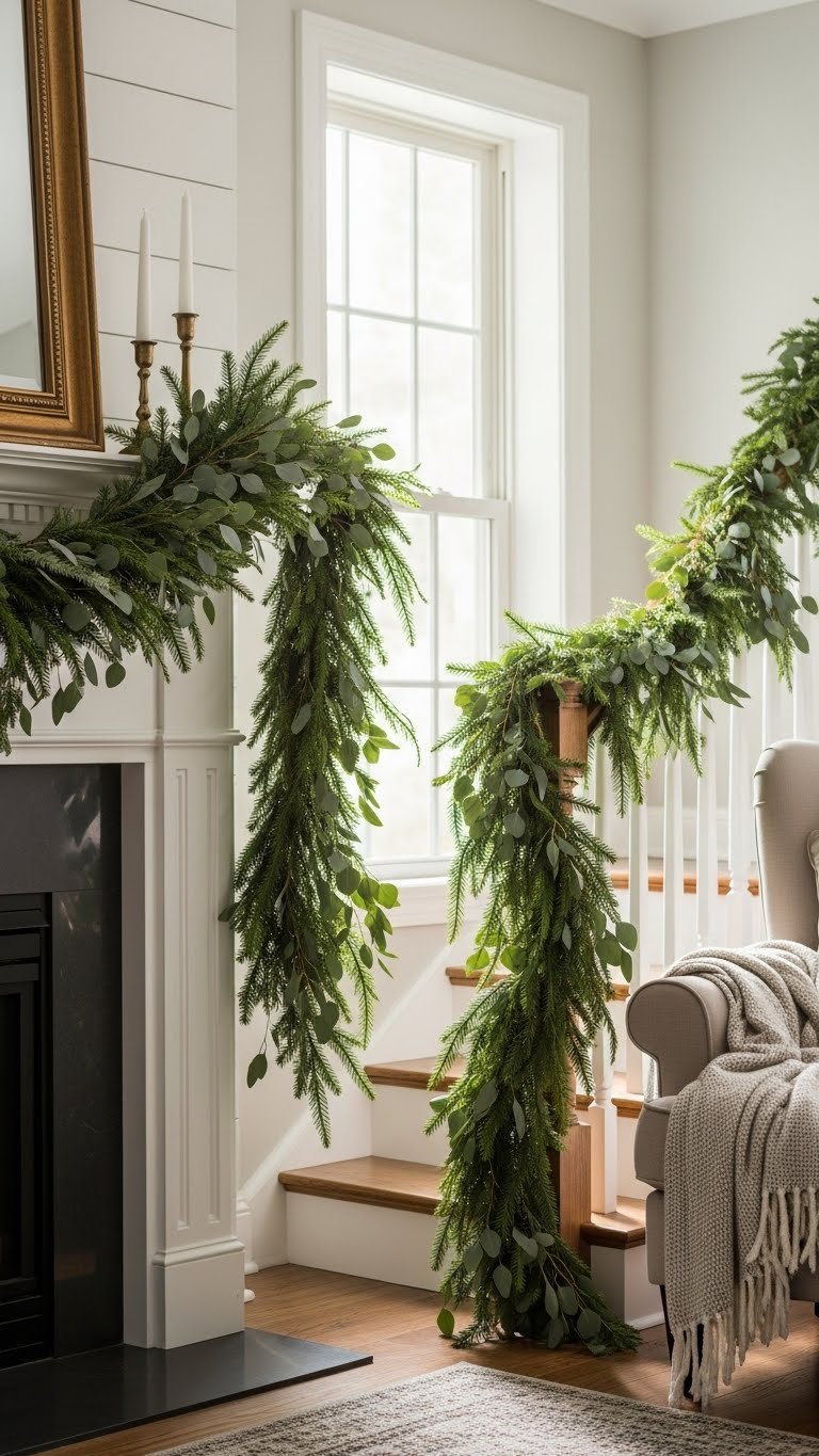 Evergreen garlands transform rooms into soft, fragrant retreats, and you’ll find they’re as versatile as they’re timeless.